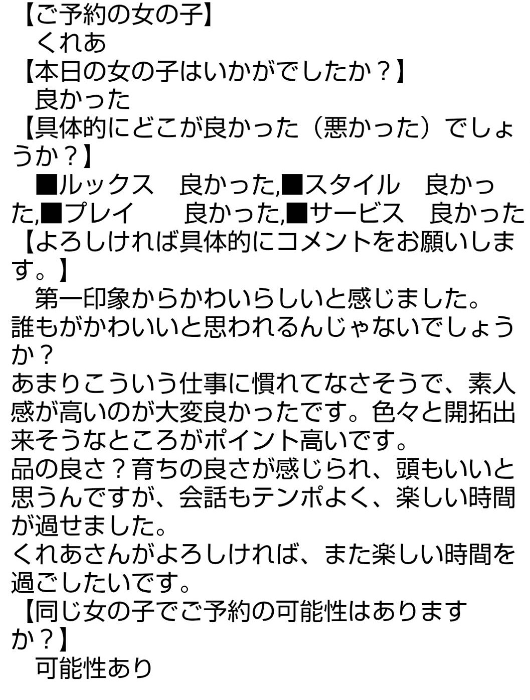 複数の女の子からの報告が上がりますと、自動的に今後のご予約はNGとなりますのでご注意ください。