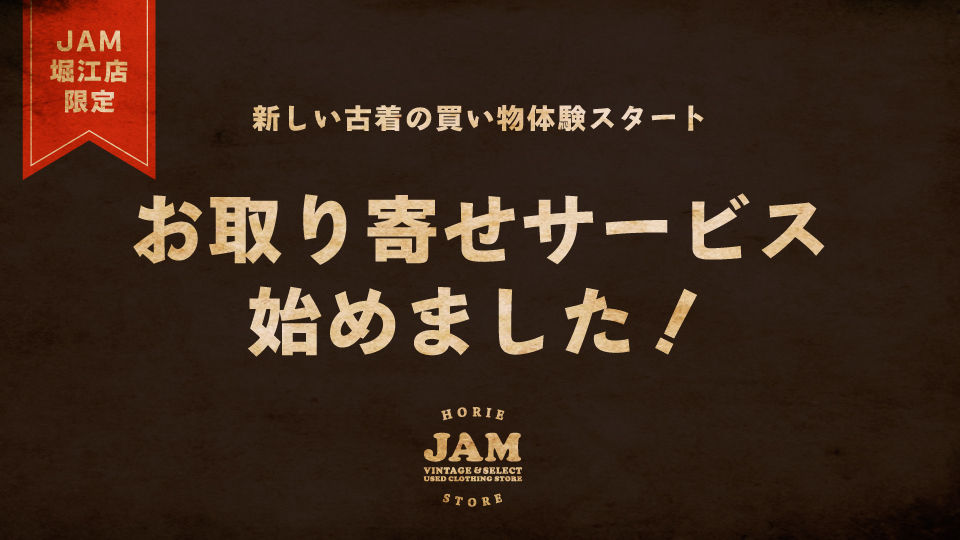 こちらは、古着屋JAMオンラインショップの商品を古着屋JAM堀江店で実際に手に取ってご覧いただくためのお取り寄せ申し込みフォームです。
