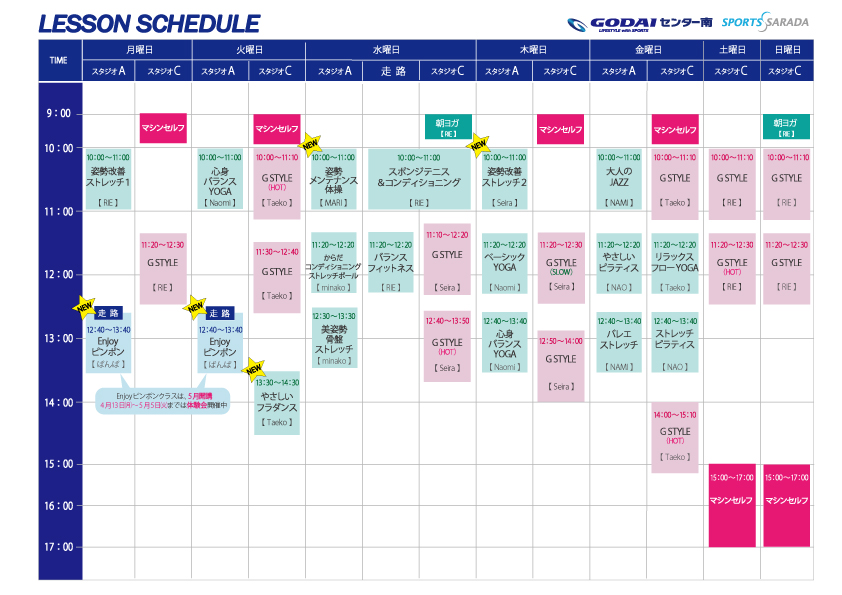 レッスンスケジュール表