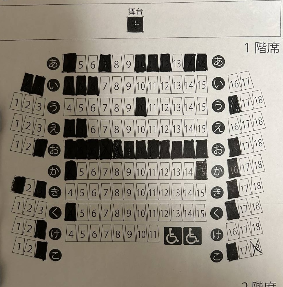 (お座席の写真、更新は一日一回行います。お申込みのお時間によっては、先に埋まる場合がございますので、ご了承下さいませ。)