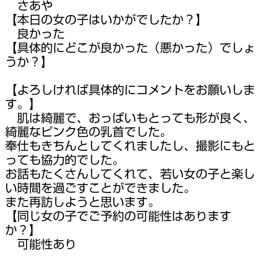 複数の女の子からの報告が上がりますと、自動的に今後のご予約はNGとなりますのでご注意ください。