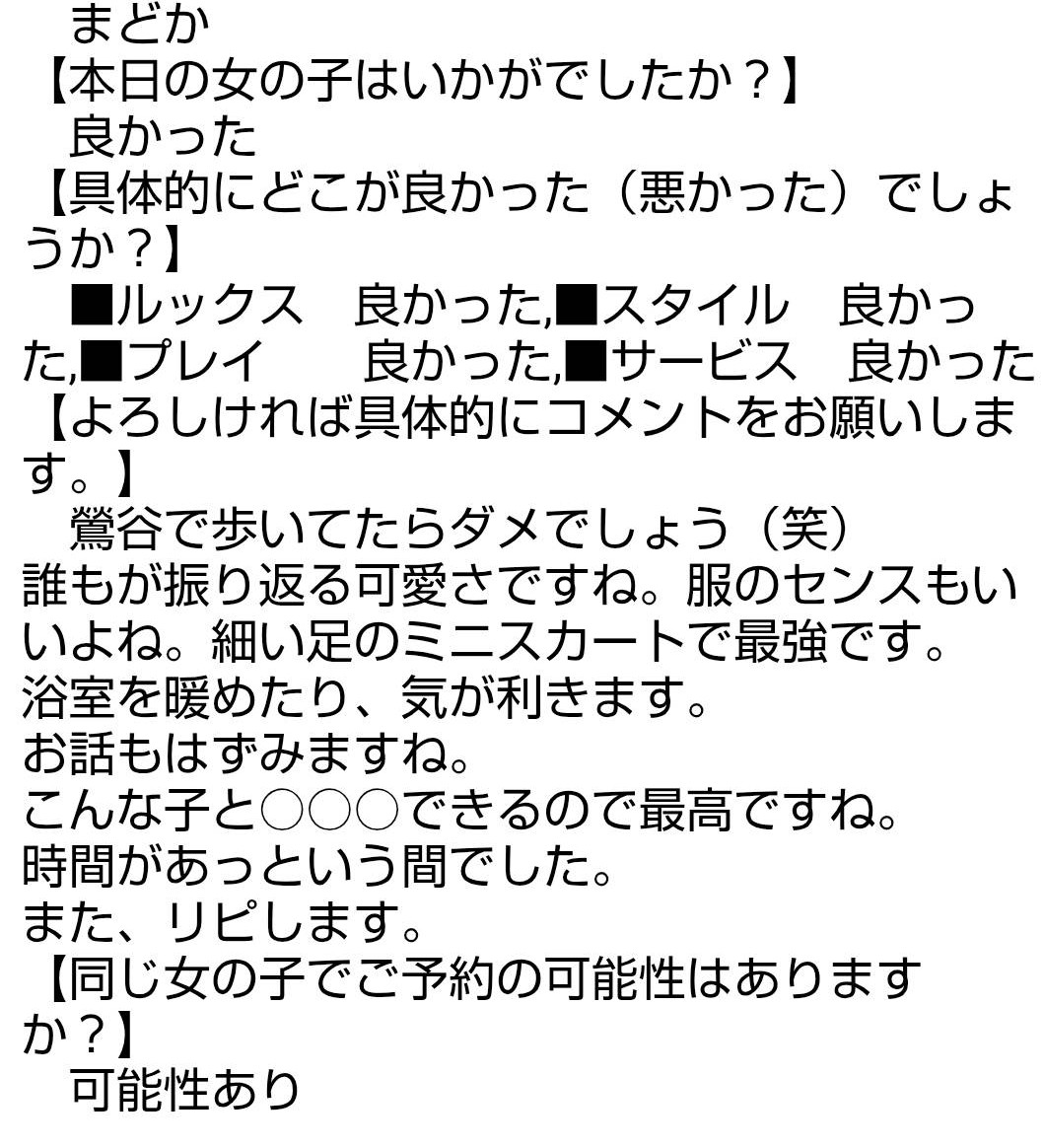 複数の女の子からの報告が上がりますと、自動的に今後のご予約はNGとなりますのでご注意ください。