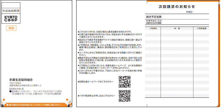 宅配等ご請求額お知らせハガキ 停止フォーム