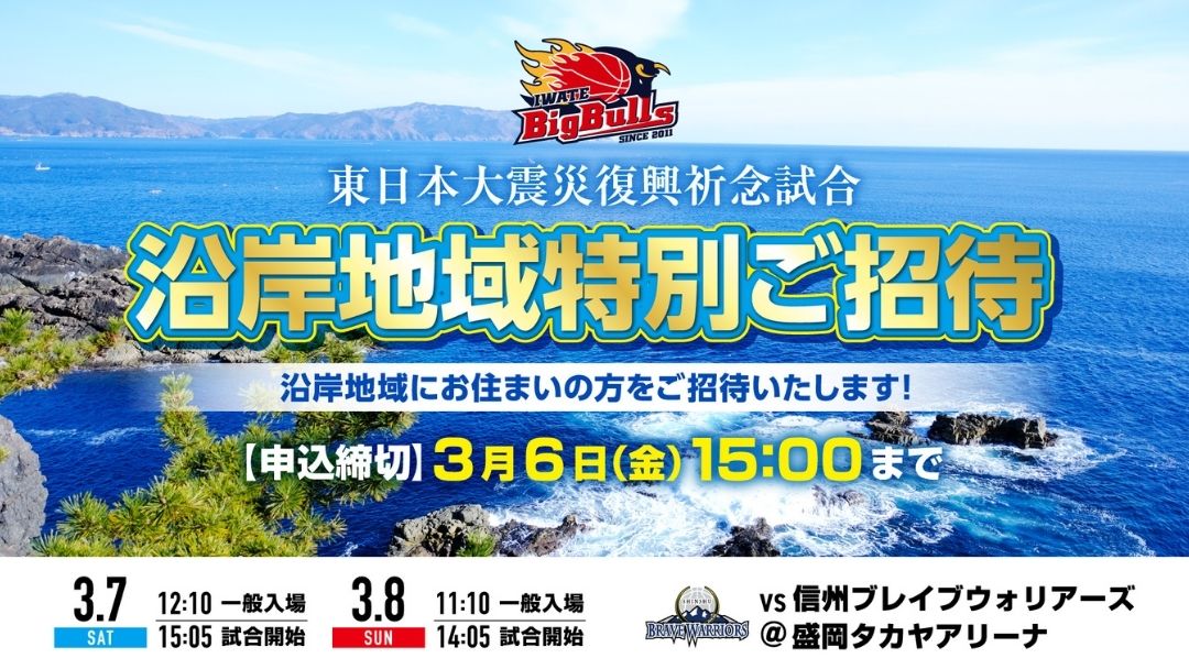 【3/7,8 vs信州】東日本大震災復興祈念試合 沿岸地域特別ご招待申込フォーム
