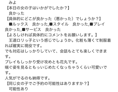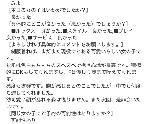 複数の女の子からの報告が上がりますと、自動的に今後のご予約はNGとなりますのでご注意ください。