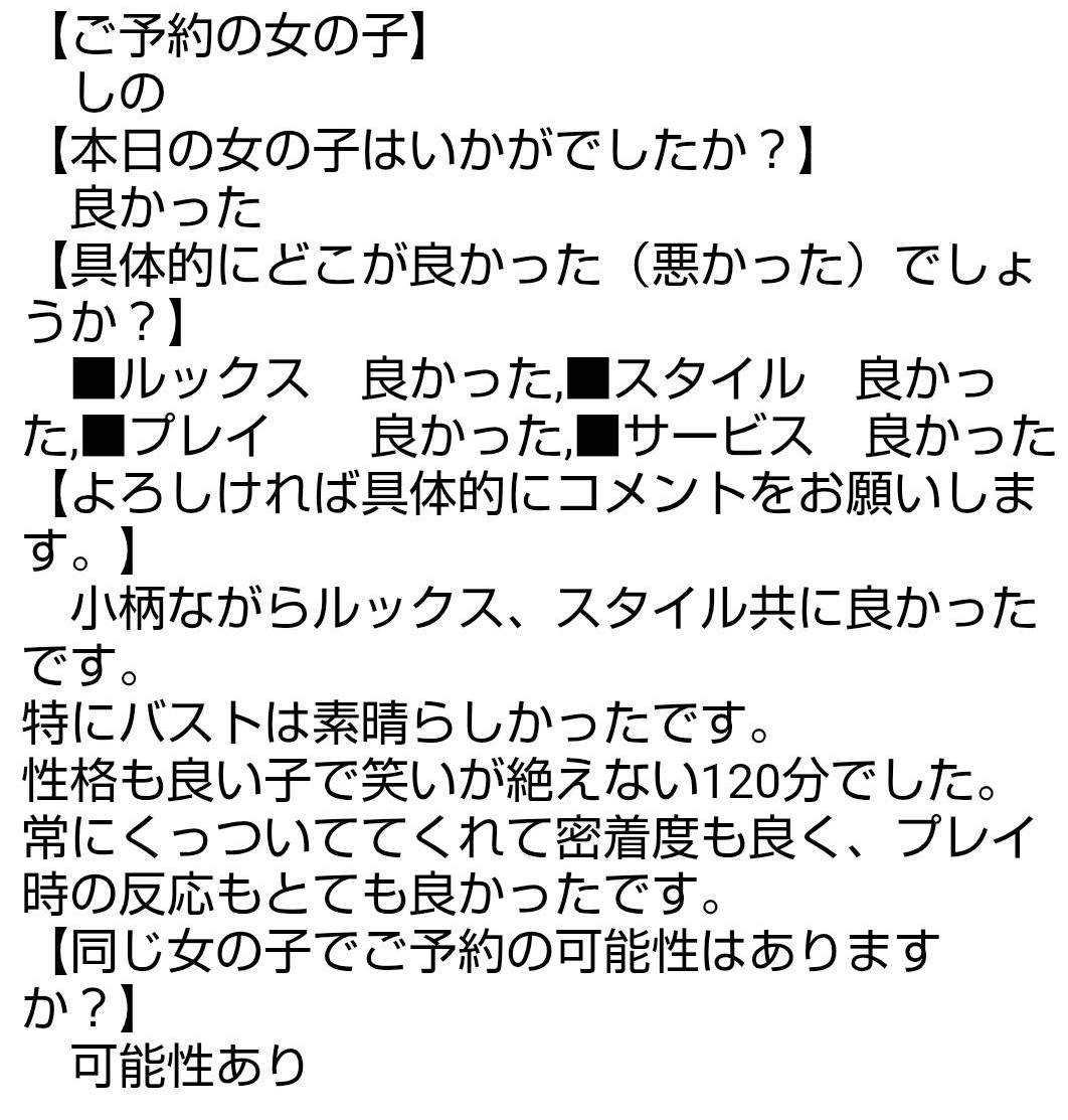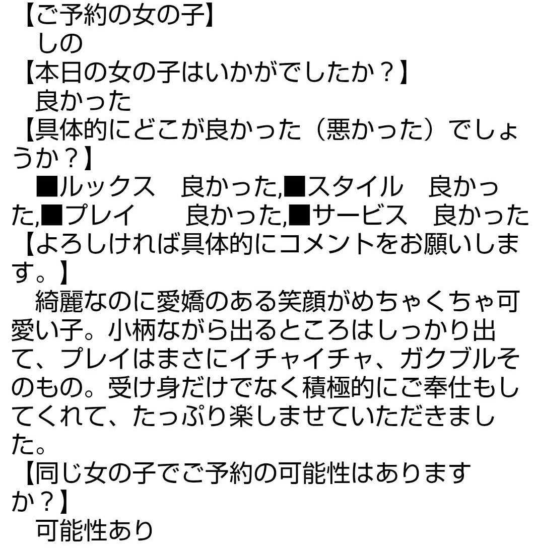 複数の女の子からの報告が上がりますと、自動的に今後のご予約はNGとなりますのでご注意ください。