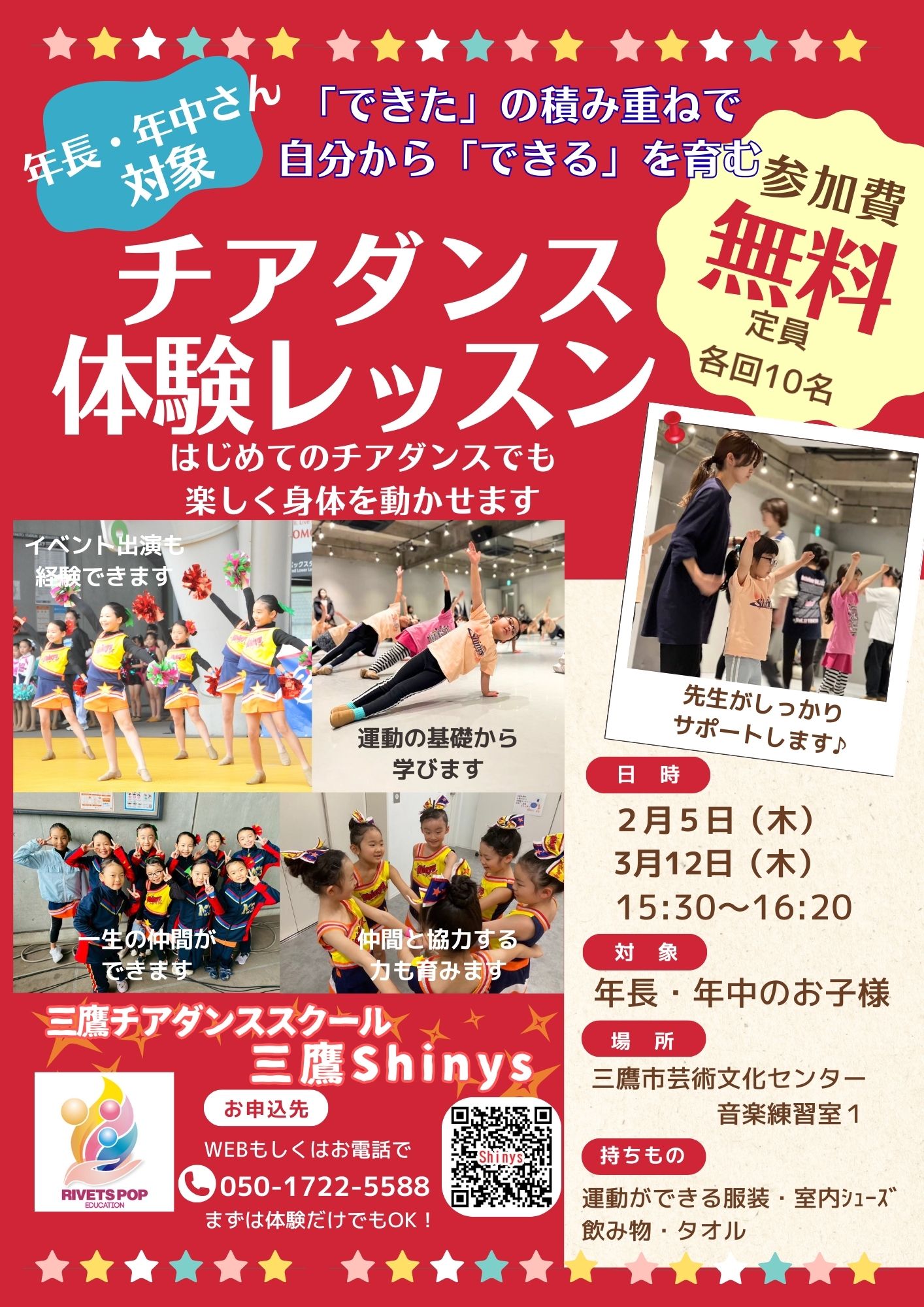 【三鷹Shinys】チアスクールへの体験・見学をご希望の方は、こちらからお申込ください。