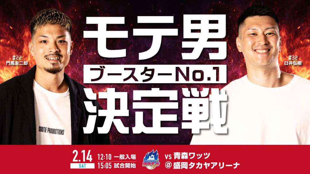 2/14(土) 岩手ビッグブルズvs青森ワッツ@盛岡タカヤアリーナにて開催する「モテ男ブースターNo.1決定戦」のエントリー受付フォームです。【エントリー条件】・男性であること・会場での写真の掲出が可能な方・2/14(土)に盛岡タカヤアリーナにご来場いただける方【グランプリ景品】2/15(日)にブルズキッチンで使えるお食事券1,000円分チケットのご購入はこちら!