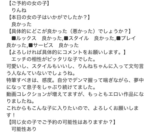 複数の女の子からの報告が上がりますと、自動的に今後のご予約はNGとなりますのでご注意ください。