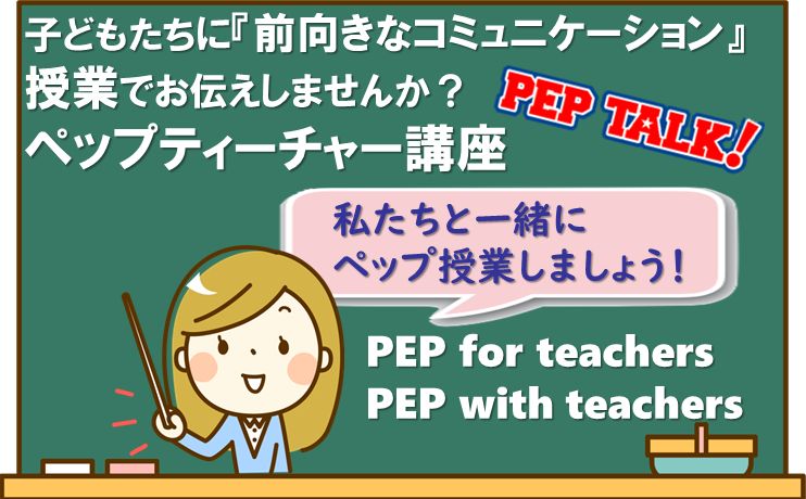 ペップティーチャーとは、ペップトークの基礎知識を学び、PEPワークシートを使ってペップトークのスキルを活用してコミュニケーションの授業を展開する先生のことです。