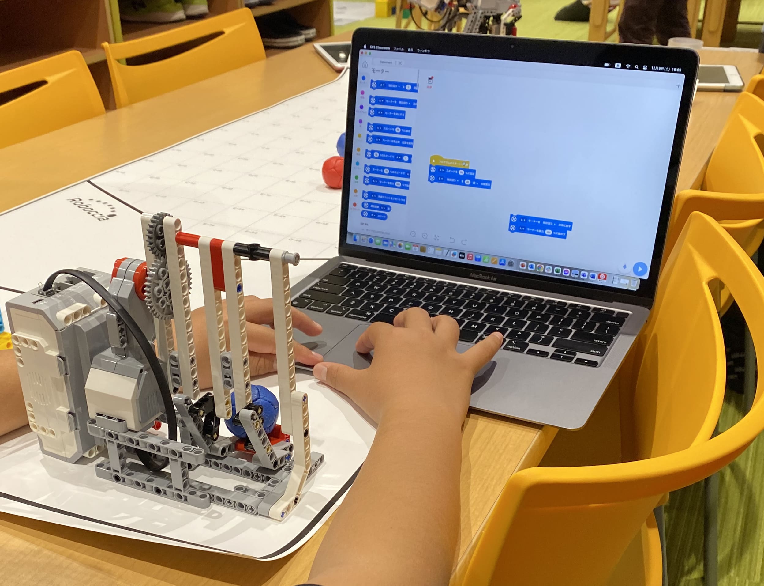 ロボットの動きを要素分解して順序立てて考えるというプログラミング的思考を養います。目的の動きが実現するまで、何度も試行錯誤を繰り返します。