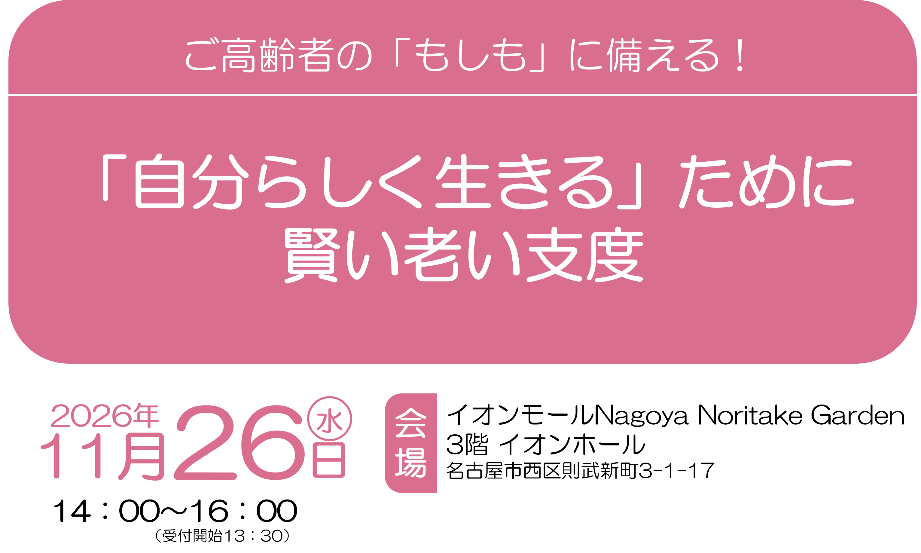 11/26(水)賢い老い支度【定員に達したため受付を終了しました】