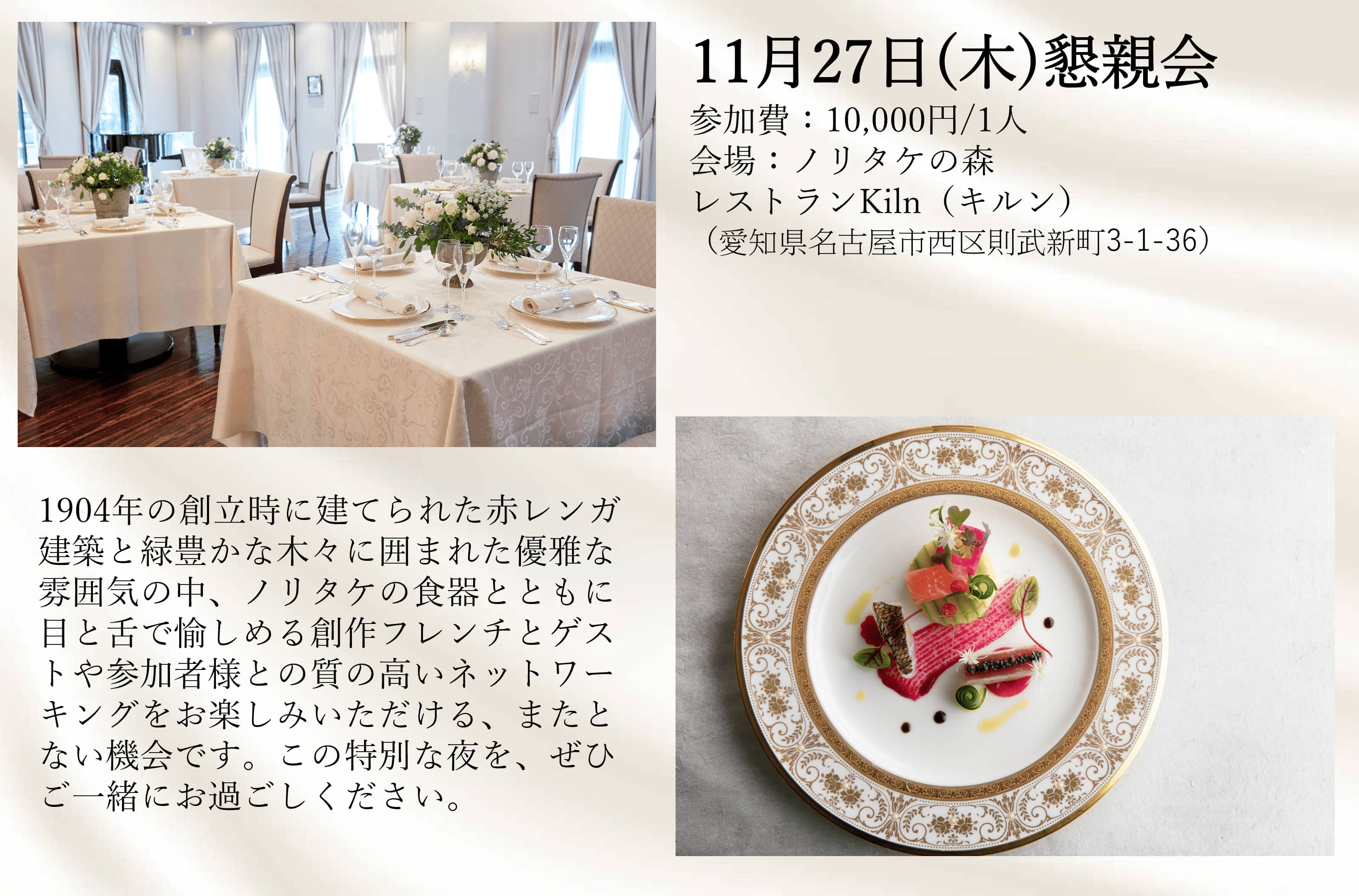 ノリタケの食器とともに目と舌で愉しめる創作フレンチとゲストや参加者様との質の高いネットワーキングをお楽しみいただける、またとない機会です。この特別な夜を、ぜひご一緒にお過ごしください。