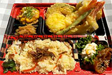 9月に収穫した神河町産コシヒカリ100%の新米を直接農家から仕入れて作ったお弁当です。5種類の野菜と大きな海老天を天つゆと抹茶塩のお好きな方でお楽しみください。