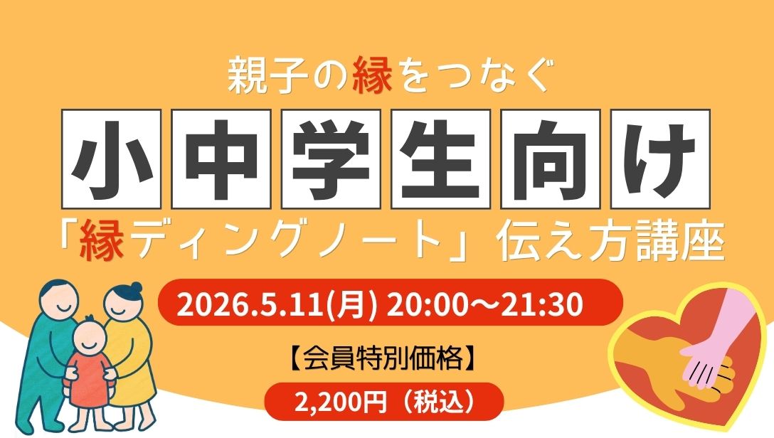 当日は、実際に使用しているレジュメや補助教材「小中学生向け縁ディングノート」もご紹介いたします。