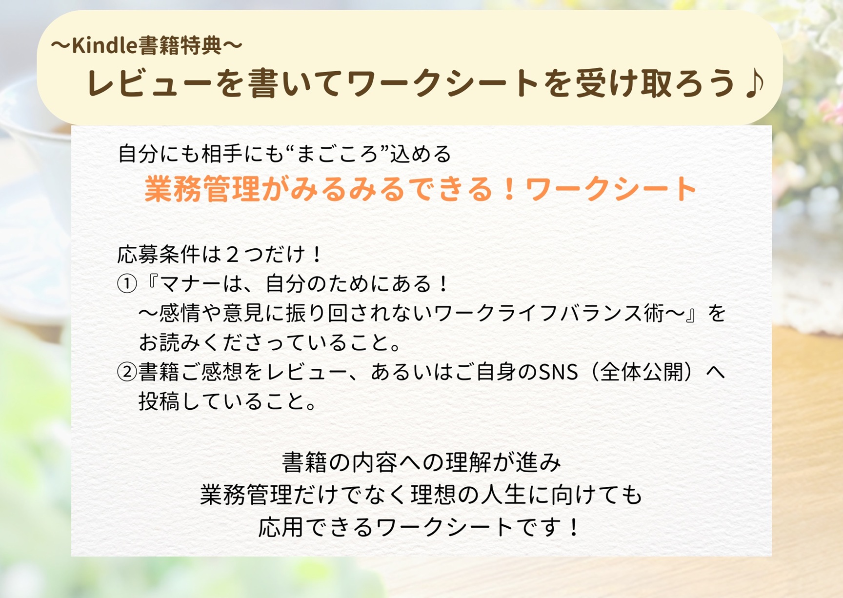 今回の特典は、理想のワークライフバランスに向けて、と書いていますが、生きる上での目標に進む時にも全く同じ。