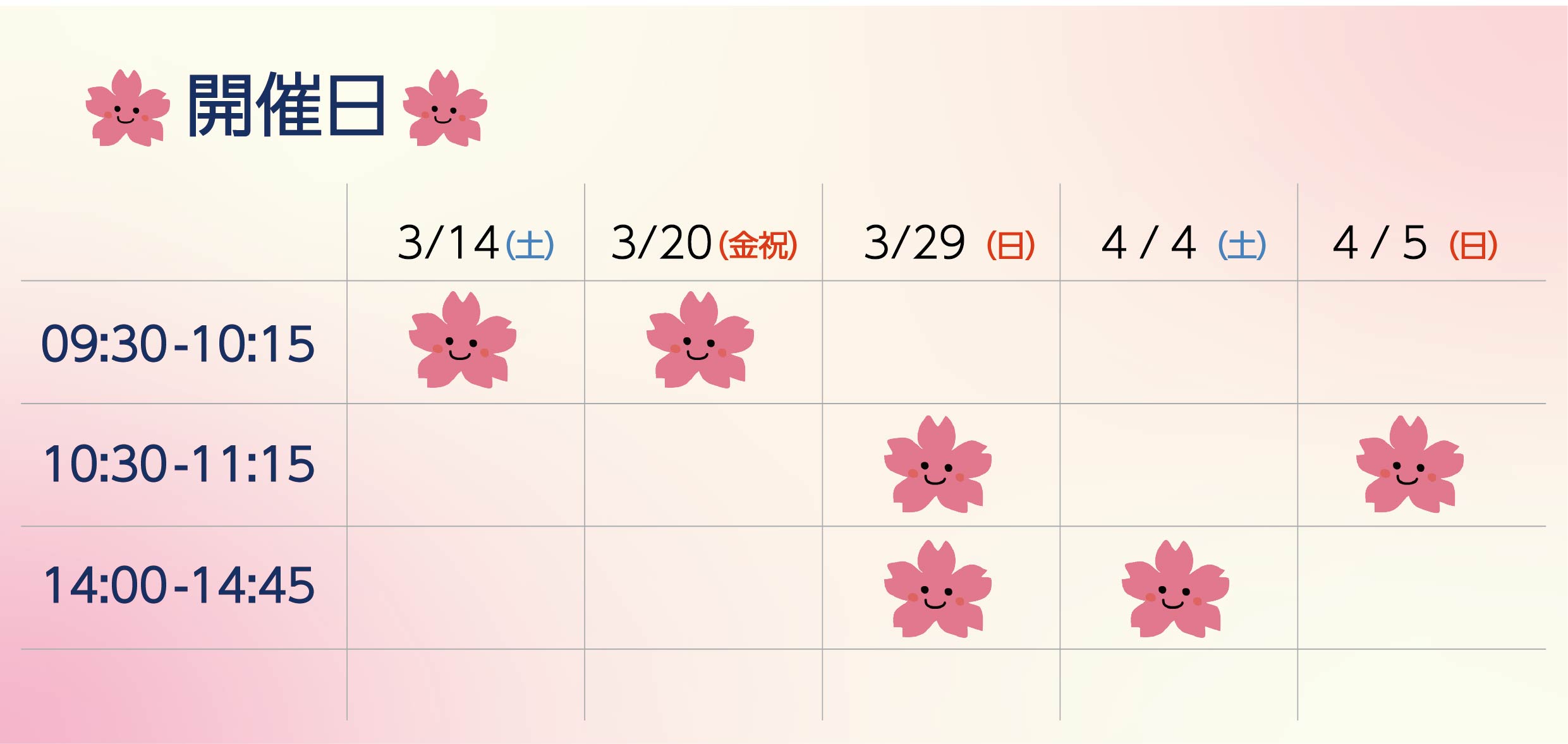 本体験は3歳〜8歳のお子さま向けの内容ですが、ご案内できる場合もございます。対象外の年齢のお子様も、ぜひ一度お電話(03-3987-3648)にてご相談ください。