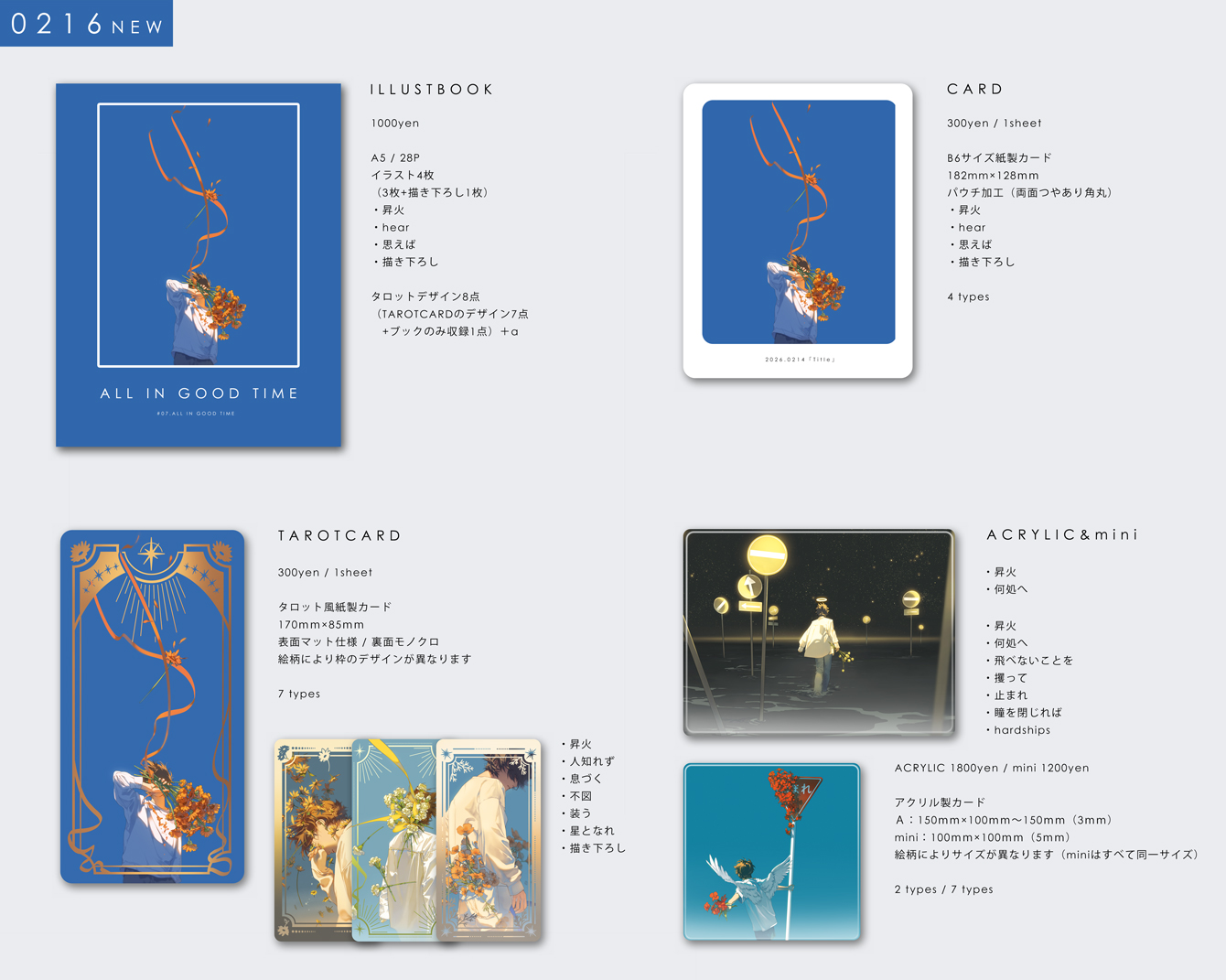 また、印刷・商品生産・発送時におけるやむを得ないもの(わずかな断裁ズレ・アクリル保護フィルムの傷・外装の汚れ等)は何卒ご了承くださいますようお願い申し上げます