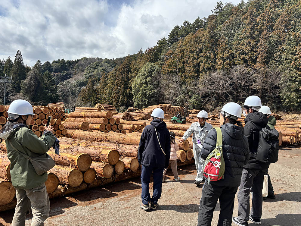 山で伐採された木がどのように売買されているのかを原木市場で知ることができます