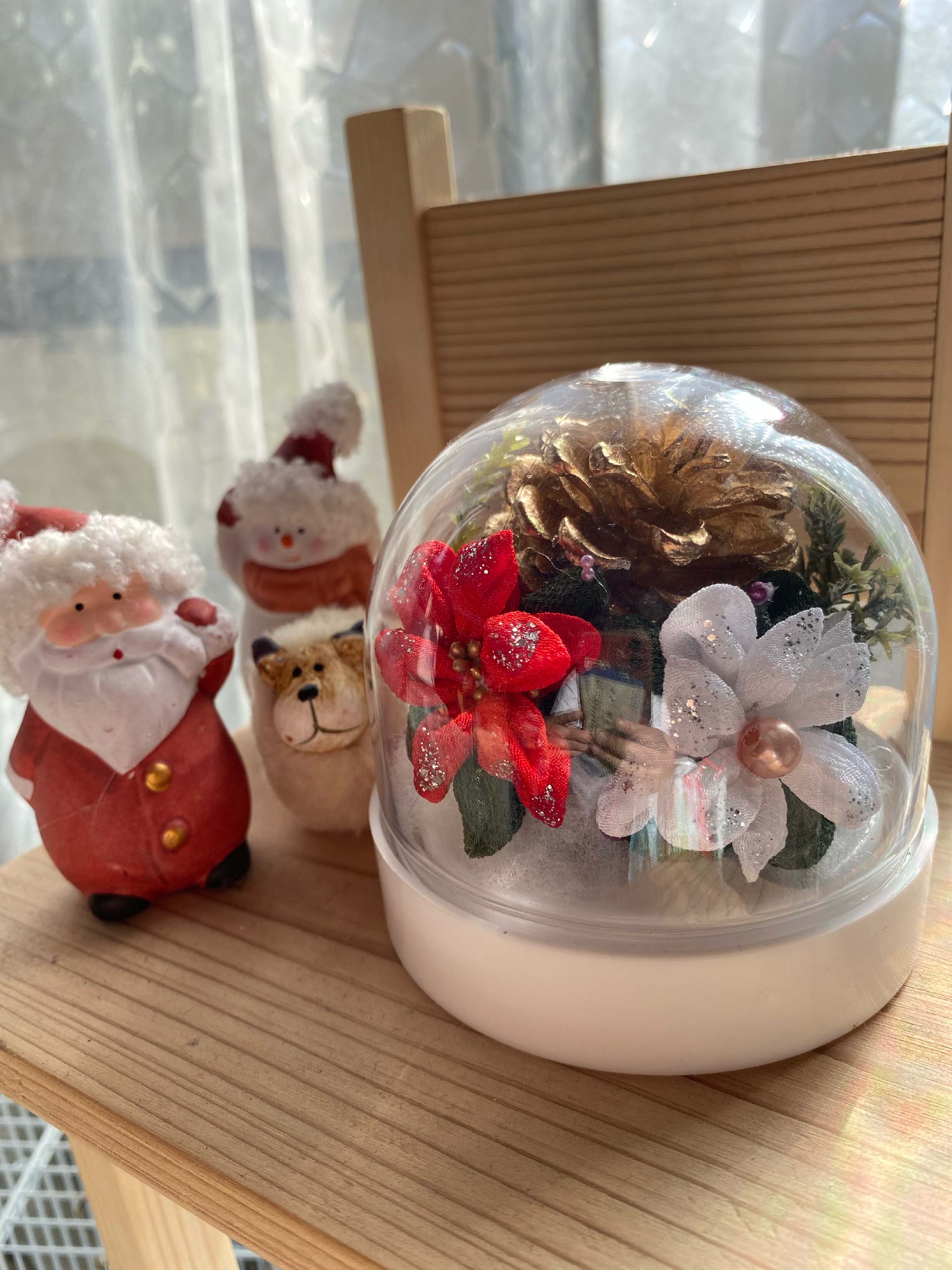 ドーム型のガラス容器に詰め込むと、クリスマスムード満点のアイテムに!