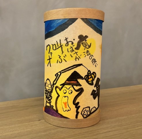 和風のランタンにハロウィンのキャラクターを描いてランプシェイドを作りましょう。どなたでも楽しく、簡単につくれます。