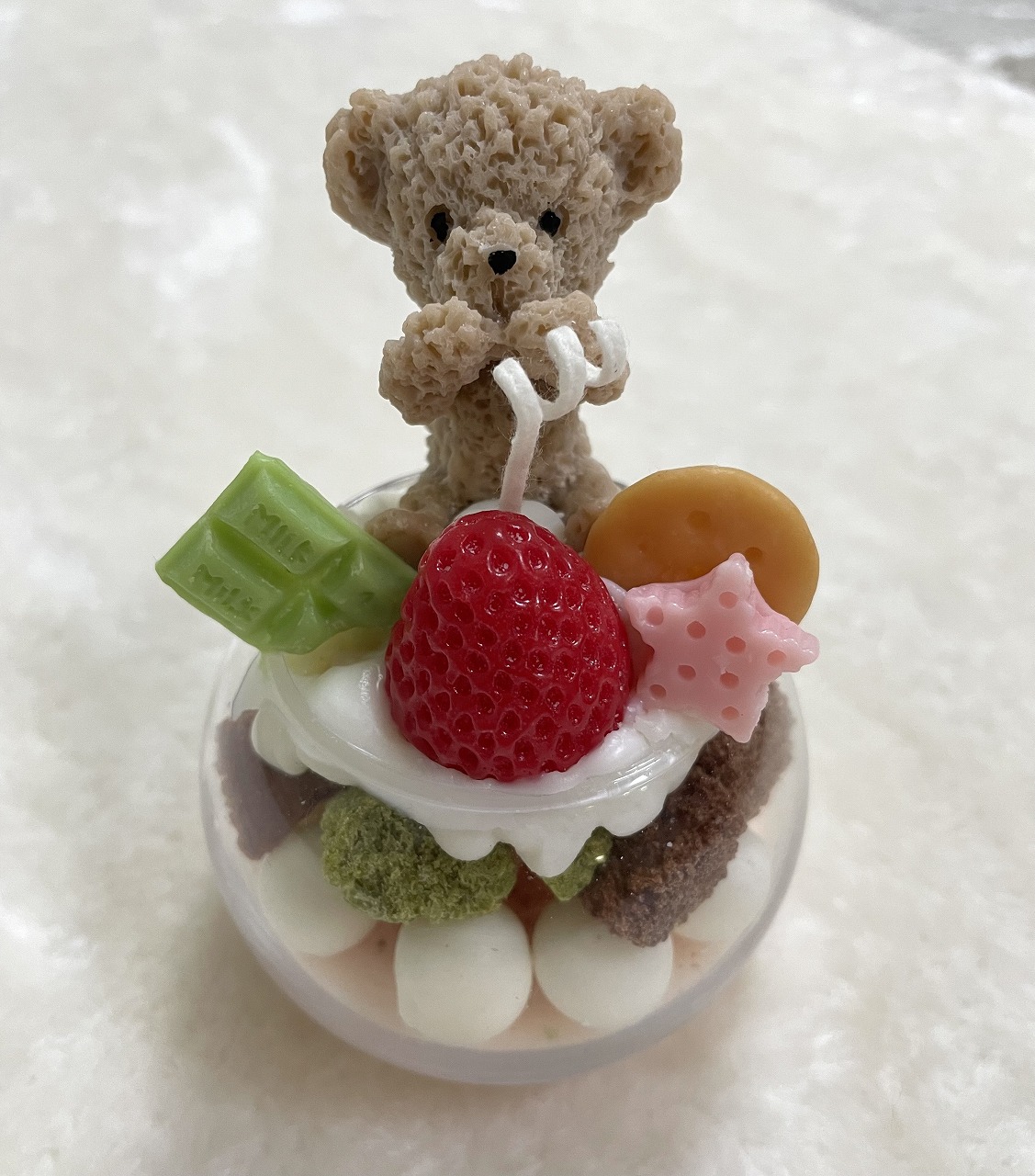 すべてキャンドルで出来たパーツです。生クリーム絞りやお好きなパーツを乗せて、オリジナルパフェキャンドルをつくります。