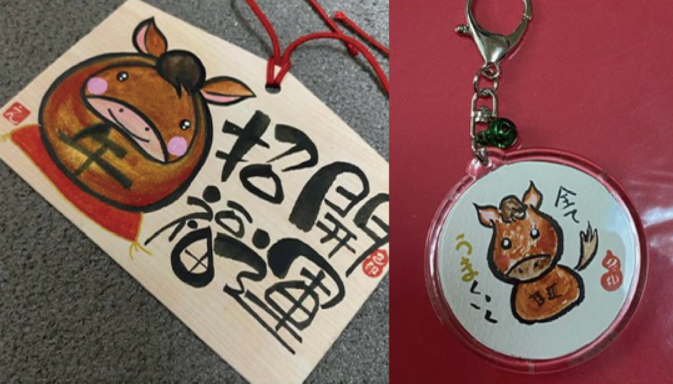 家内安全、商売繁盛、受験合格…など、今年の目標や願い事を絵馬やキーホルダーに書きましょう。 A.絵馬 B.キーホルダー どちらかをお選びください。