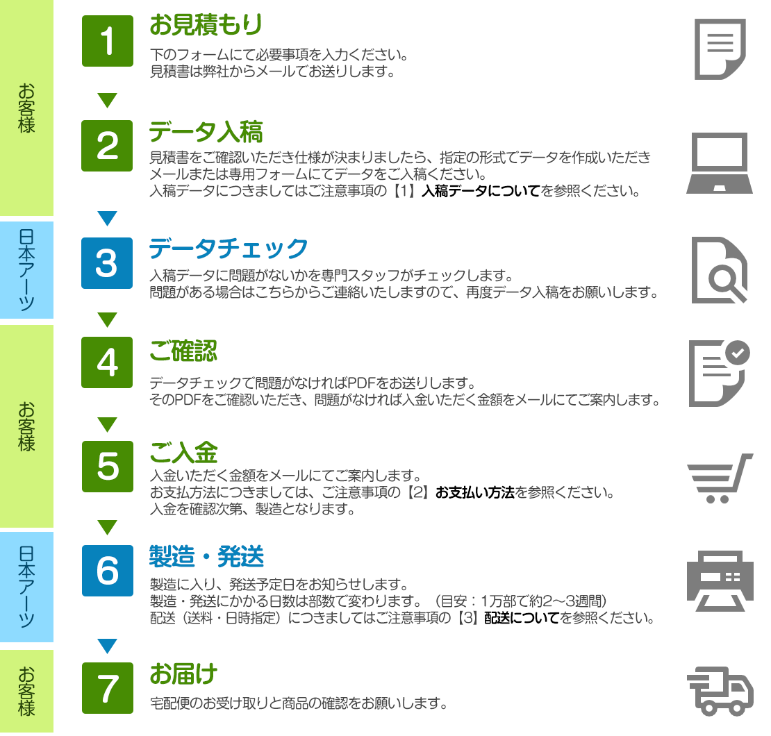 日本アーツ株式会社は、皆様に安心と信頼を頂ける、印刷業務及びそれに付帯する業務において、皆様の大切な個人情報、個人番号及び特定個人情報(以下「個人情報」)を保護することが、継続的な事業活動の基本であると共に、重要な社会的責務であると認識し、今後も引き続き個人情報の適正な取扱いに努めてまいります。 尚、詳細は、「個人情報の取扱いについて」をご覧ください。