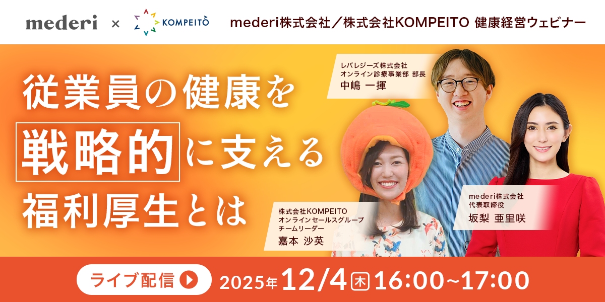 従業員の健康課題に向き合うオンライン診療サービス 「mederi for biz」 が共演。