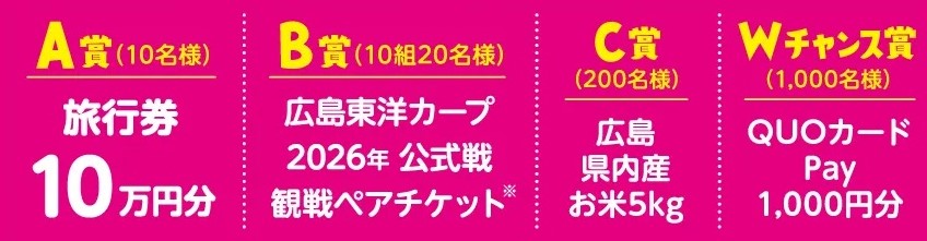 ●抽選時期:令和8年2月を予定 ※カープ観戦ペアチケットは令和8年6月以降のお渡しとなります。