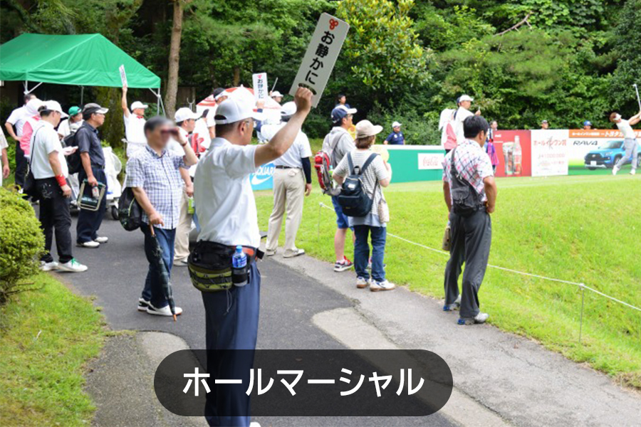 | ホールマーシャル | C (やや必要) | 指定された場所でギャラリーの整理をする役割です。 選手が円滑にプレーが進められるように、一方で、ギャラリーが安全に観戦できるように誘導します。通称「お静かに係」。 |