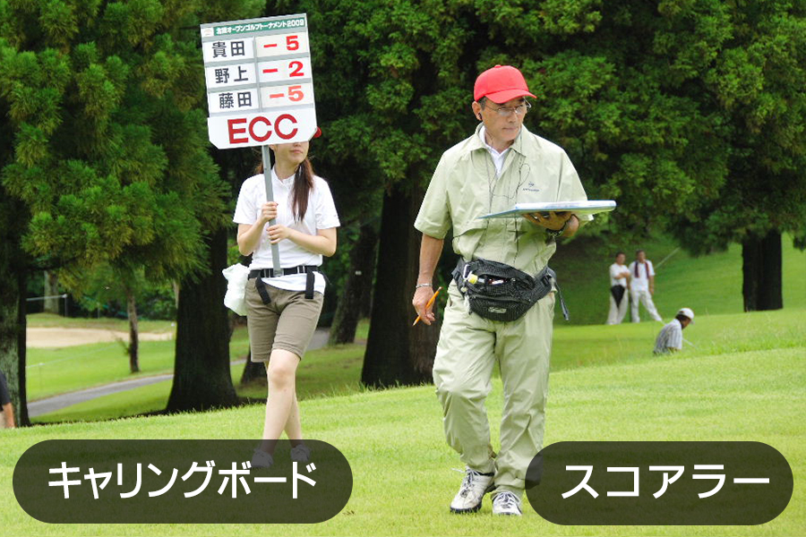 | キャリングボード 【7月19日(土)のみ】 | B (やや必要) | 決勝の当日、1組に同行して後半の9ホールを選手のスコアを示す表示ボードを持って回ります。 通称「歩く速報板係」。 |