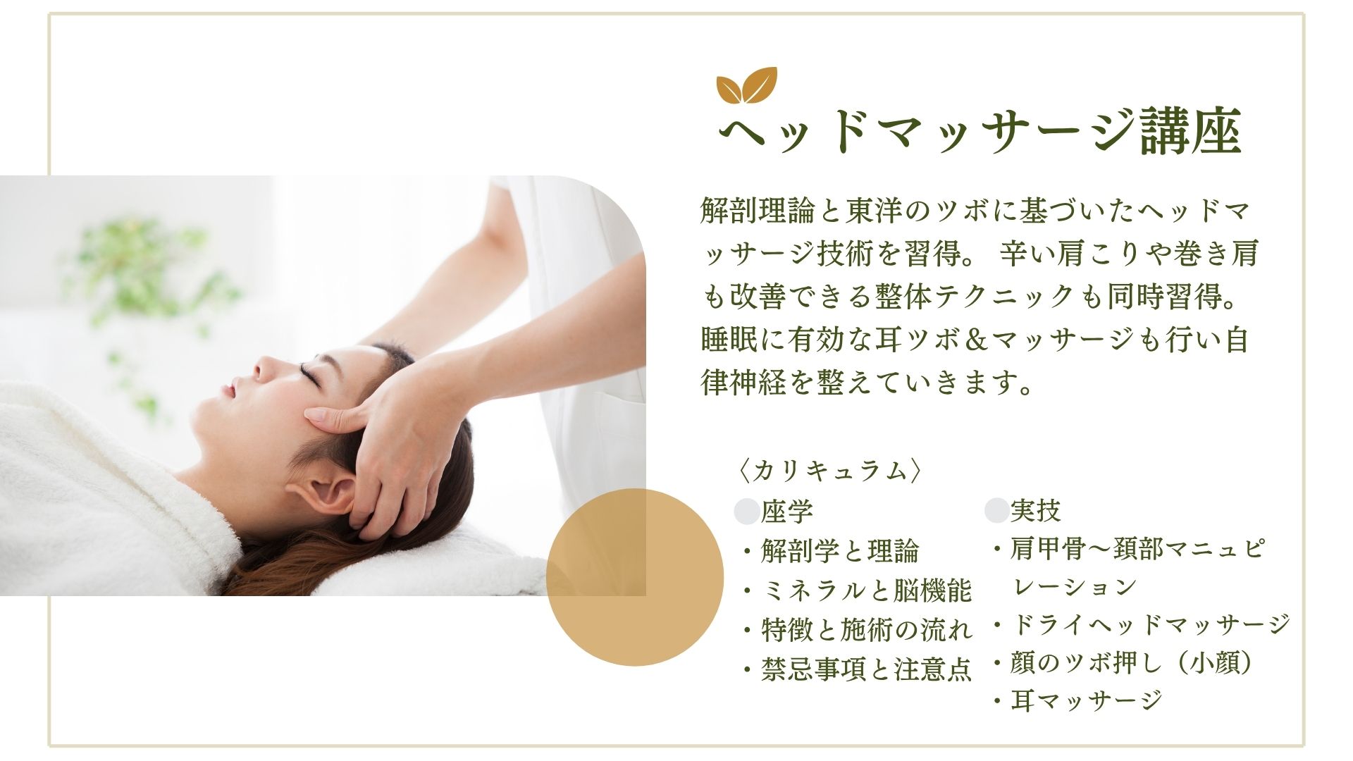 【2月〜3月】ヘッドマッサージ講座(睡眠改善プログラム導入):銀行振込¥55,000