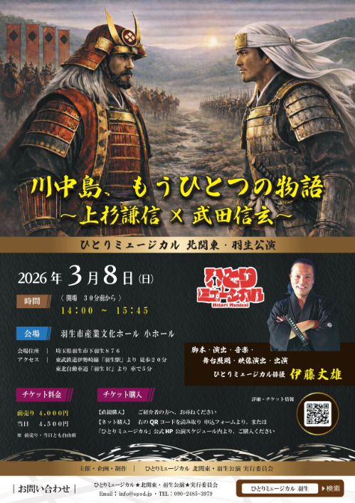 火花散る、戦国の名勝負「川中島の対決」が、ひとりミュージカルで鮮烈に蘇る。