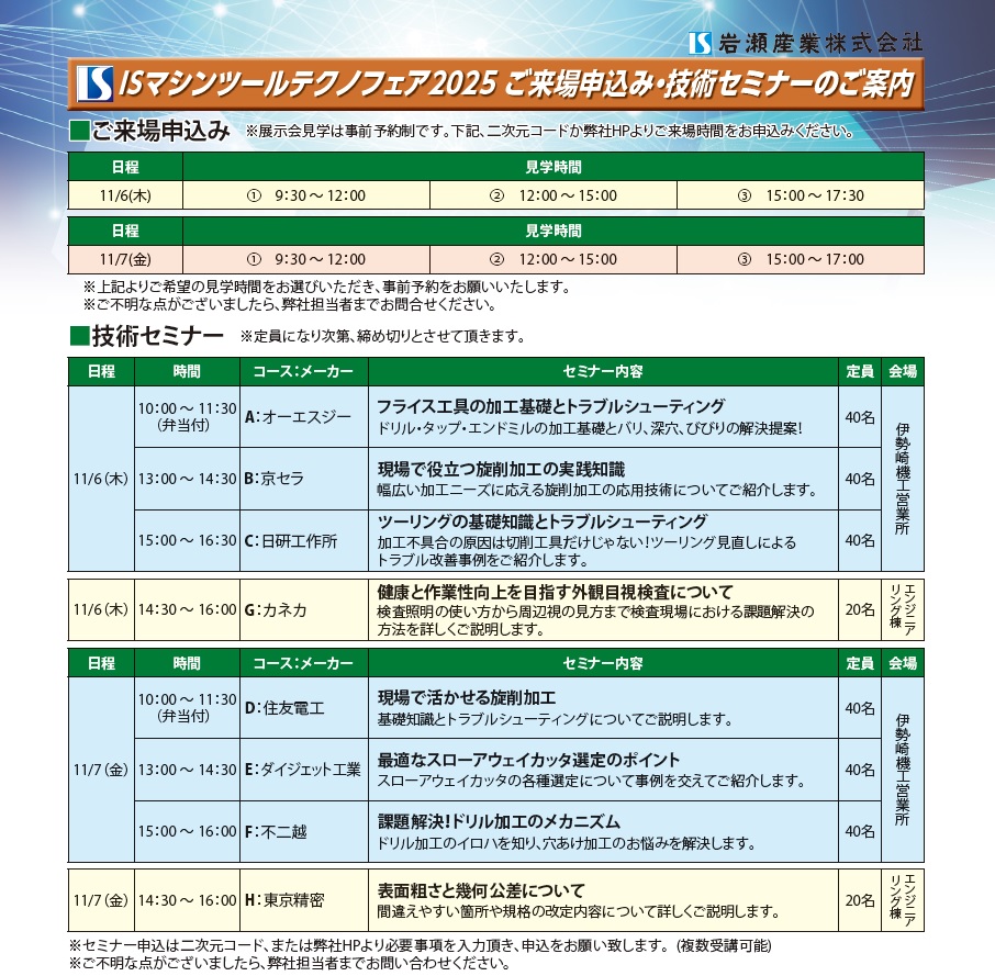 「ISマシンツールテクノフェア2025」のご来場予約は、11月5日(水)17:00までとなっております。
