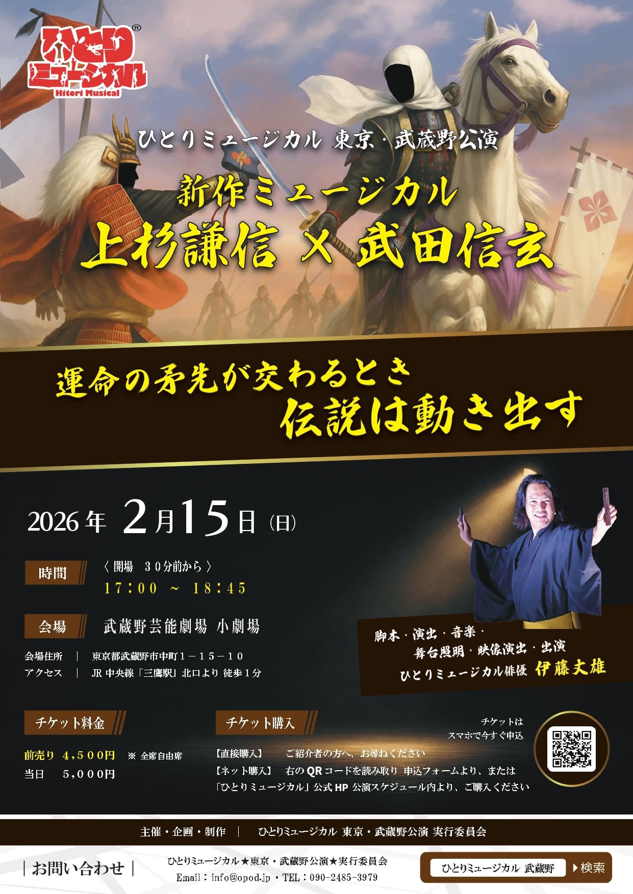 火花散る、戦国の名勝負「川中島の対決」が、ひとりミュージカルで鮮烈に蘇る。