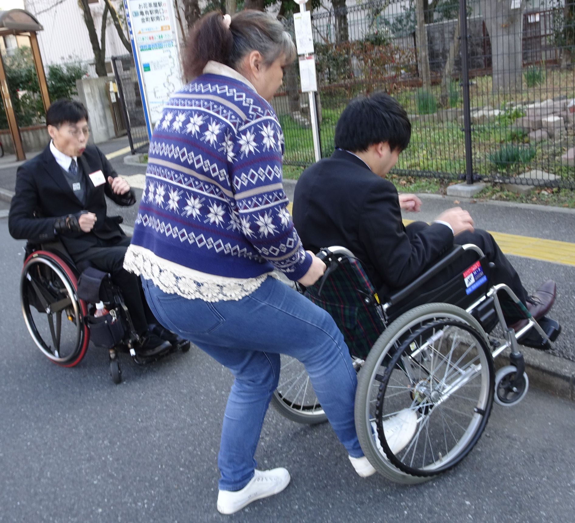 車いすユーザーの講師による講演後、ウェルピアかつしか周辺で
