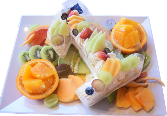 数字の1がケーキ、旬のフルーツと楽しめるので人気!