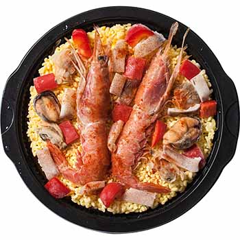 パエリア人気No.1!石川県産のコシヒカリを土鍋でじっくり焚き上げ、魚介のスープ&たっぷりの具材を3層にして瞬間冷凍しました。大きめの海老を1尾、ムール貝、あさり、イカなど魚介をたっぷりトッピングしました。