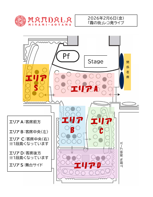 | エリアC | 客席中央(右) ※1段高くなっています |