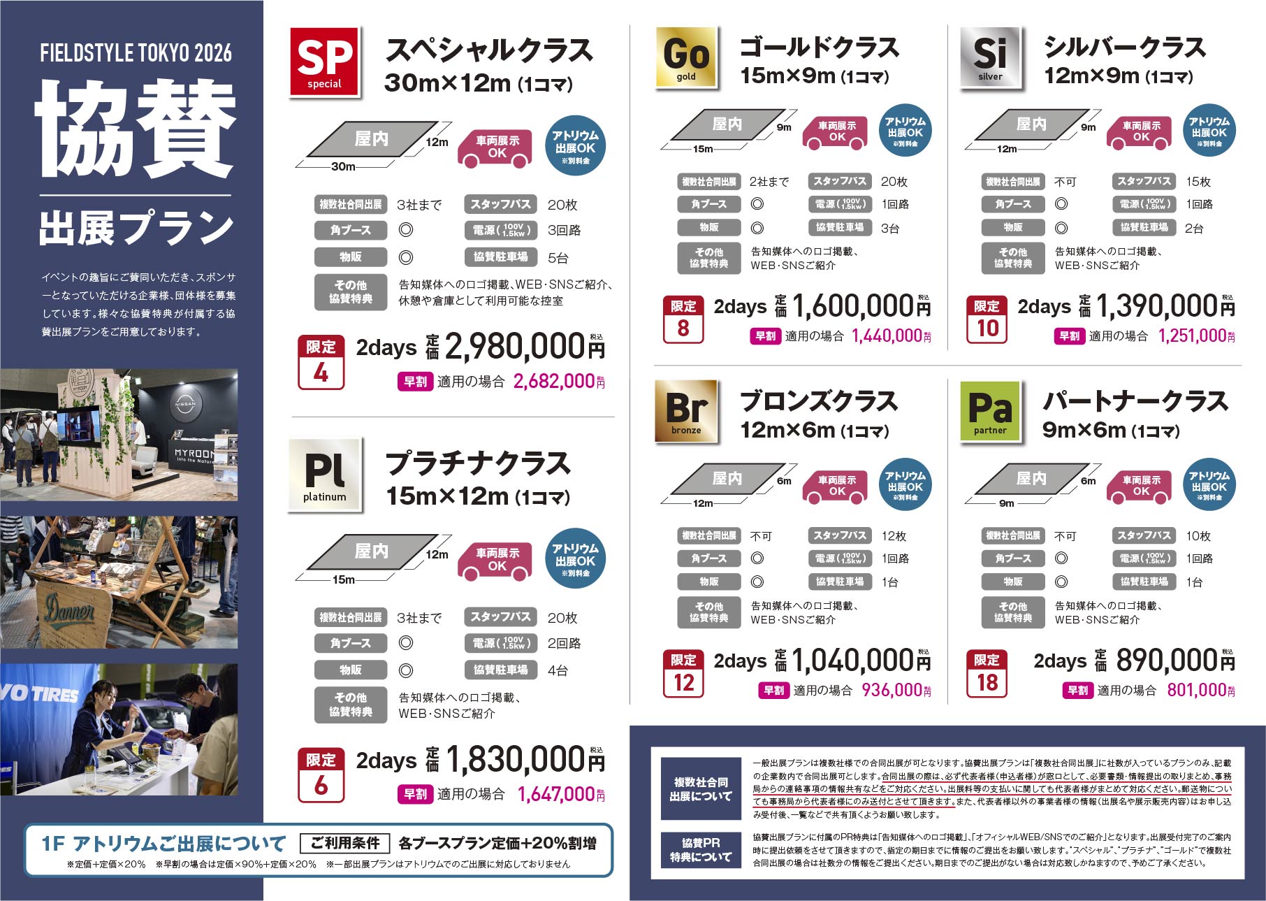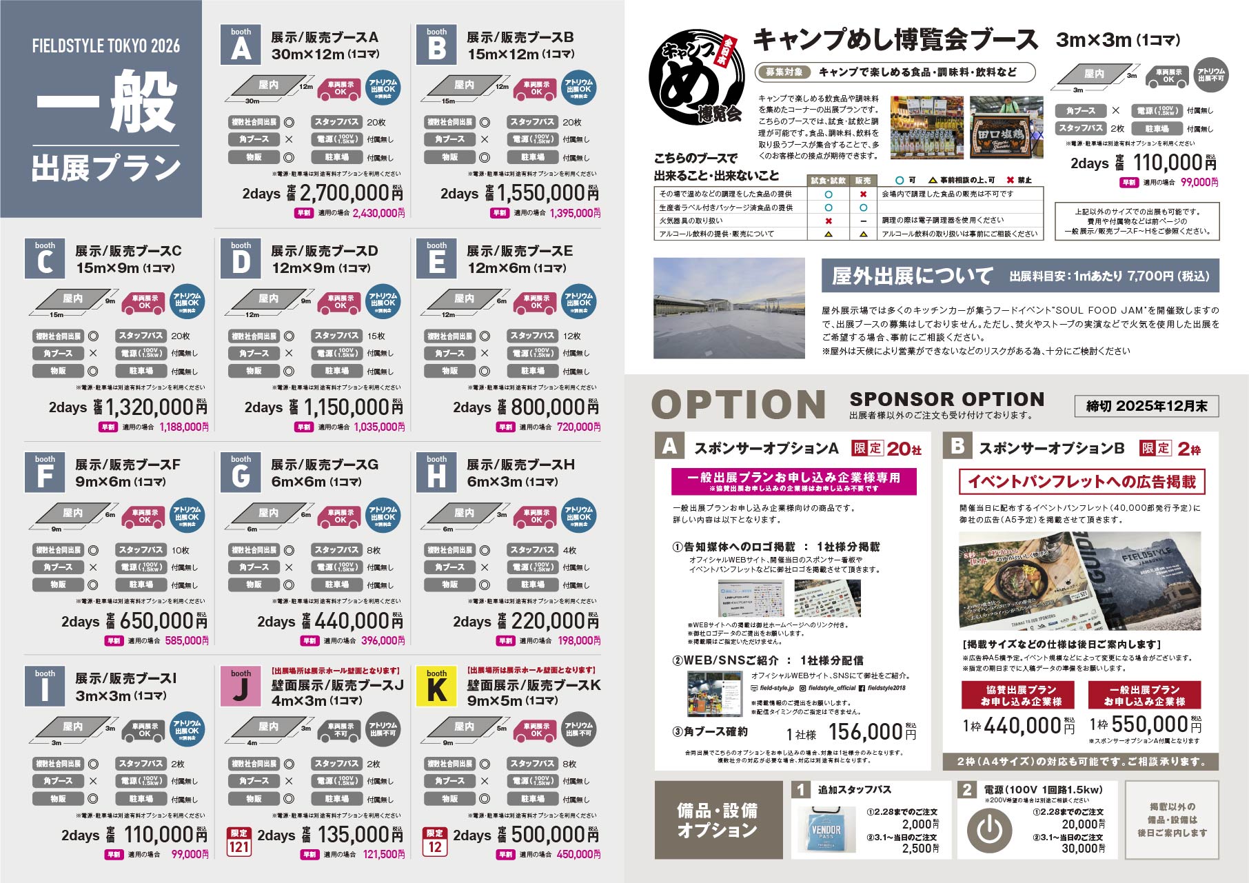 ・2026年2月28日(土)以前の出展取消(キャンセル)について、理由を問わず事務手数料(出展料・オプション料合計金額の15%)をいただきます。なお、ブースプランの変更は承ります。
