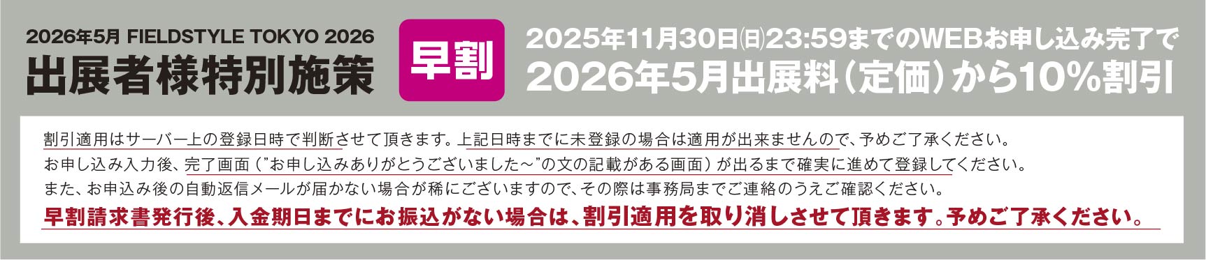 ・2026年3月1日(日)以降の出展取消(キャンセル)について、理由を問わず返金は一切おこなわないものとします。