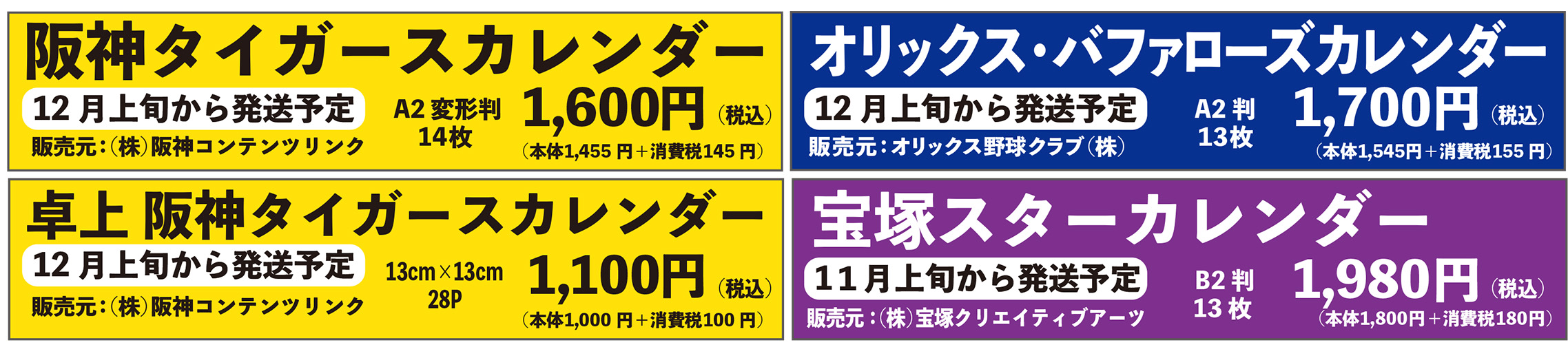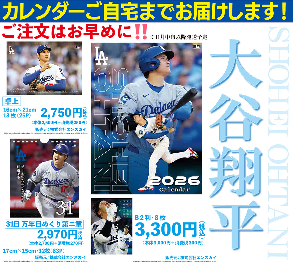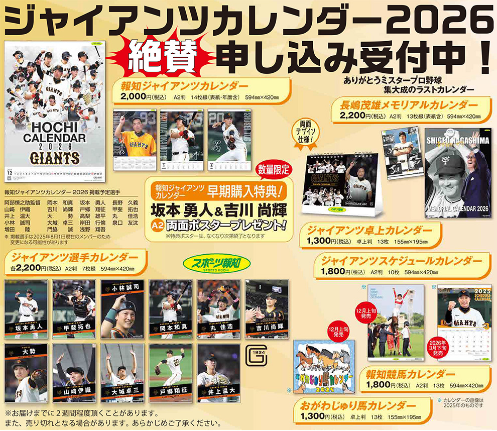ジャイアンツカレンダーや選手個人カレンダーなど、各種取り揃えております