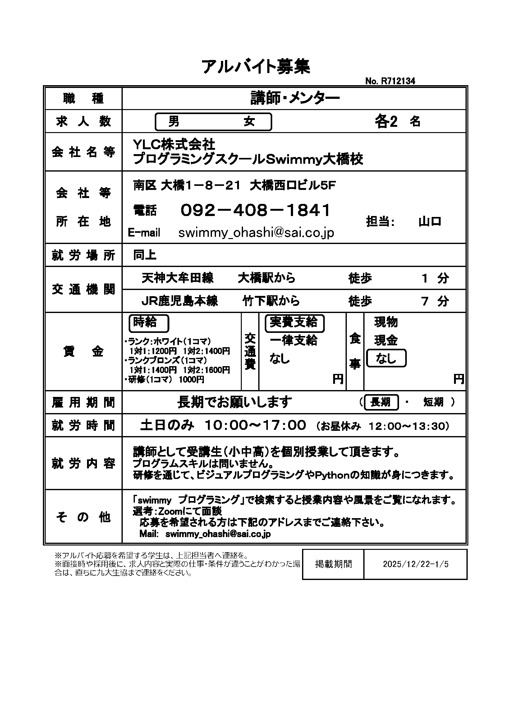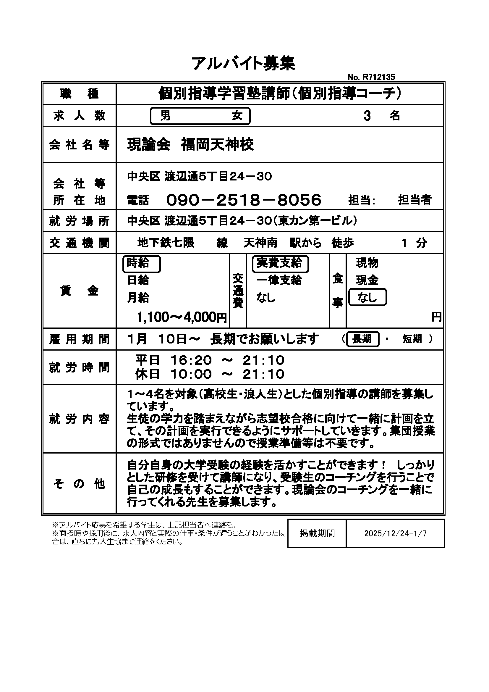 九大生協 アルバイト募集掲示板