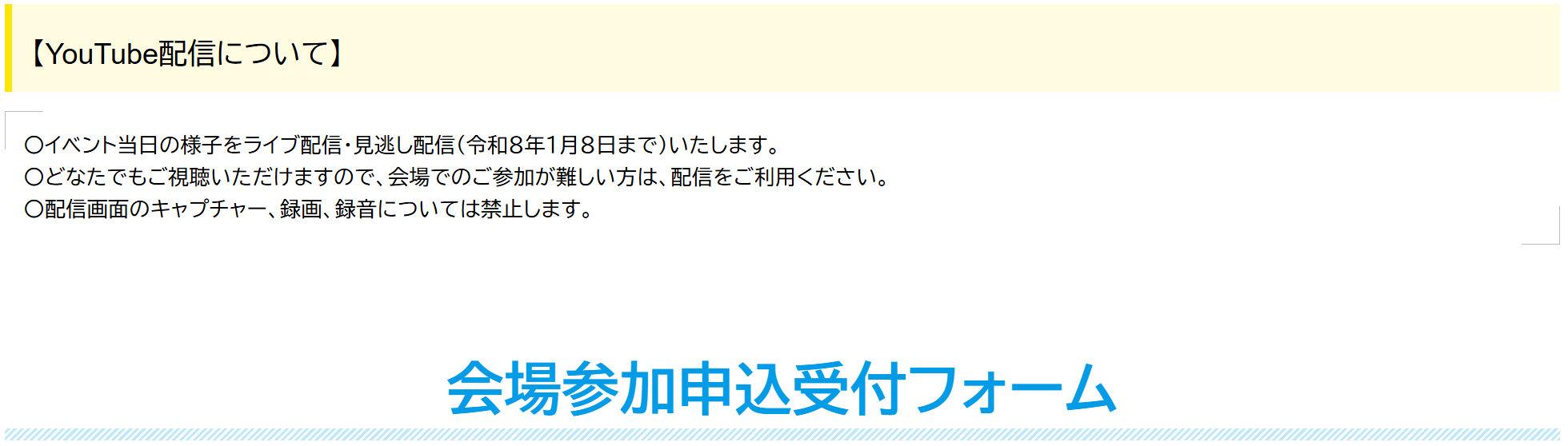 〇イベント当日の様子をライブ配信・見逃し配信(令和8年1月8日まで)いたします。